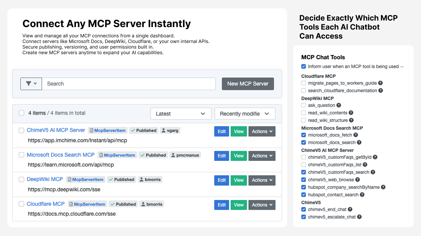 Your agents connect directly to your company's resources - SharePoint documents, CMS content, knowledge bases, and live web data. When employees ask questions, agents respond with your real policies, current procedures, and up-to-date information.
